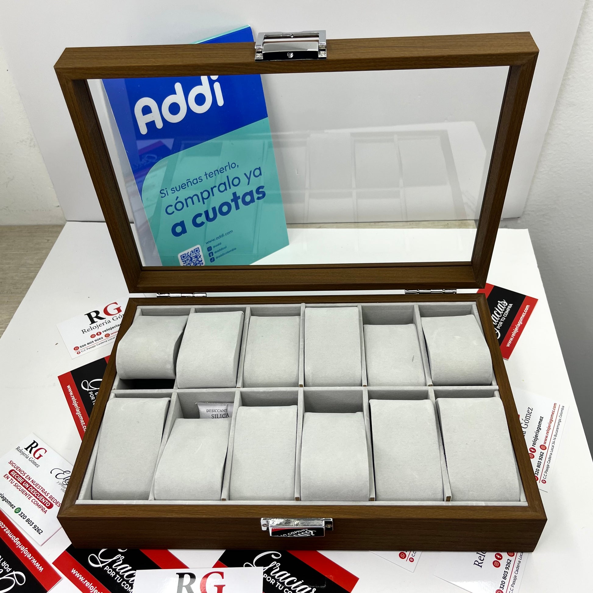 Diseñada para almacenar hasta 12 relojes, lo que la hace ideal para coleccionistas.
